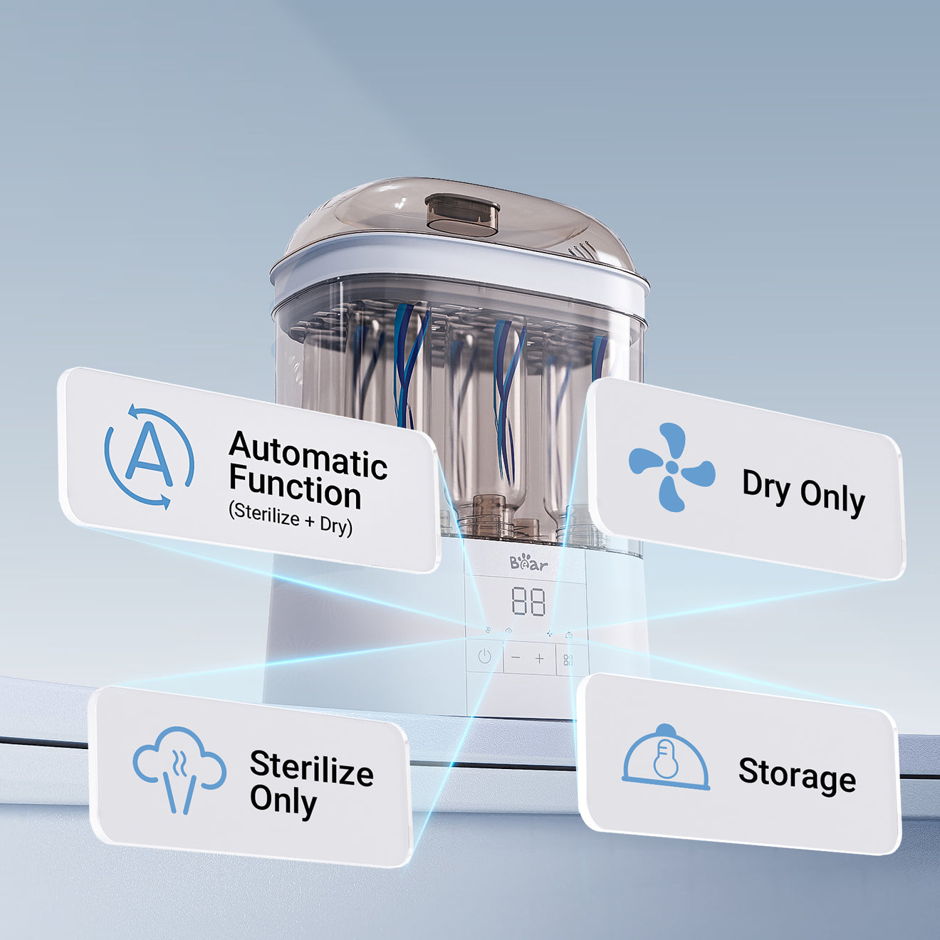 Smart & Safe Operation: Choose from 4 intuitive digital modes (Auto, Sterilize, Dry, Store). Built-in anti-dry burn protection and a low-water alert guarantee 100% worry-free use.