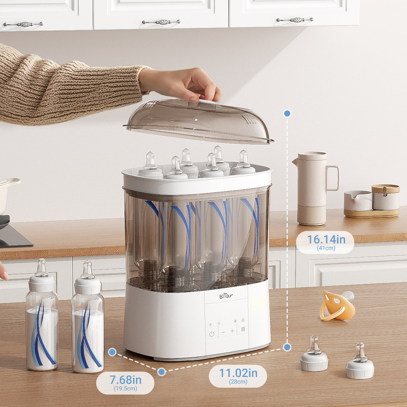 Featuring advanced hot air drying, this BPA-free sterilizer quickly removes moisture, leaving bottles spotless with no water residue. The 48-hour sterile storage mode keeps items germ-free in a dust-free environment.