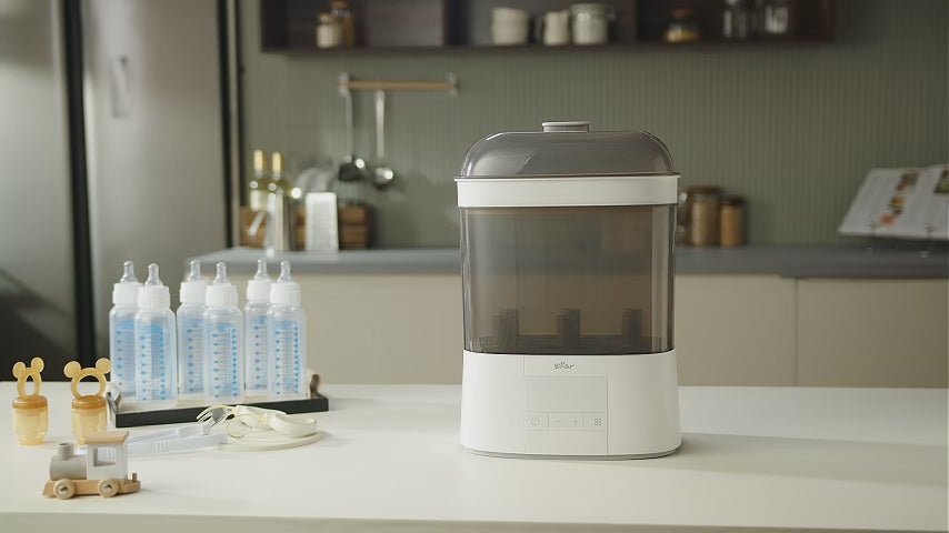 Not at all. The sterilizer features a simple control panel with preset modes for easy one-touch operation. Just add water, load the bottles, and press the desired function. Built-in safety protections and clear indicators make it convenient and worry-free for all parents.