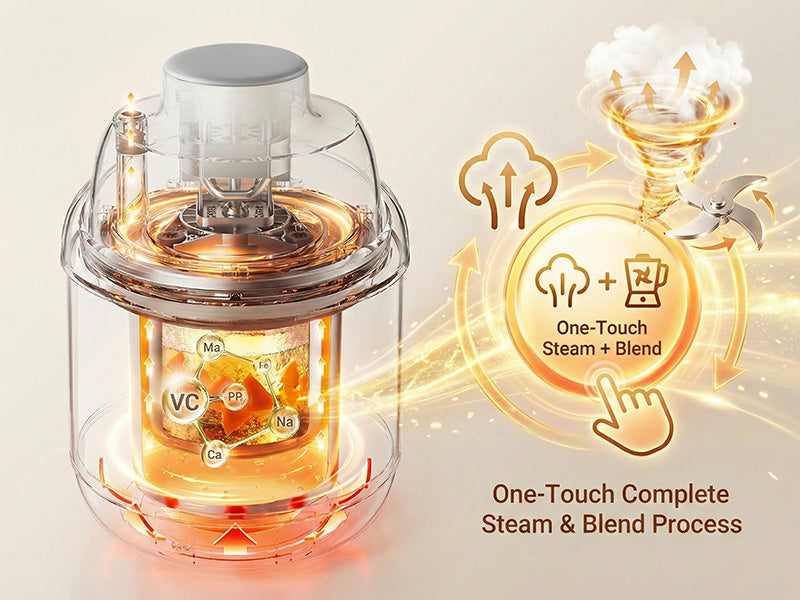 Precision Texture Control: Featuring upgraded 3D floating blades and dual mixing modes (Auto/Manual). Effortlessly switch from silky-smooth purees to chunkier textures as your little one’s palate develops.
