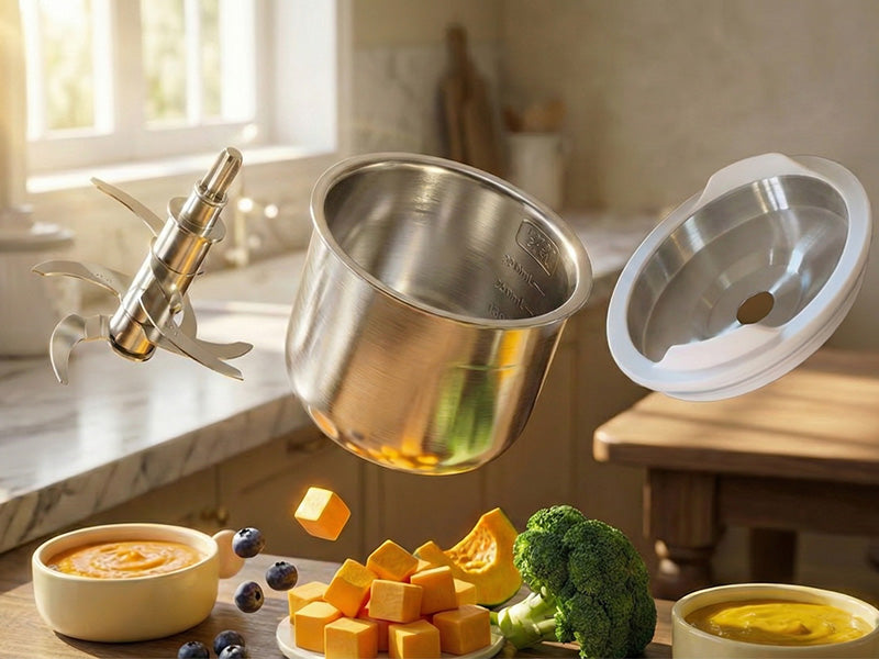 Pristine Stainless Steel Path: Experience total peace of mind with a 100% food-grade stainless steel bowl and blade system. It’s naturally non-toxic, odor-free, and ensures your baby's meals never touch plastic during heating.
