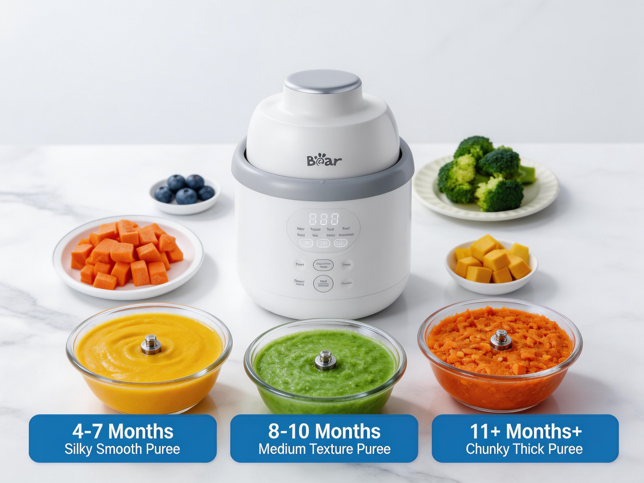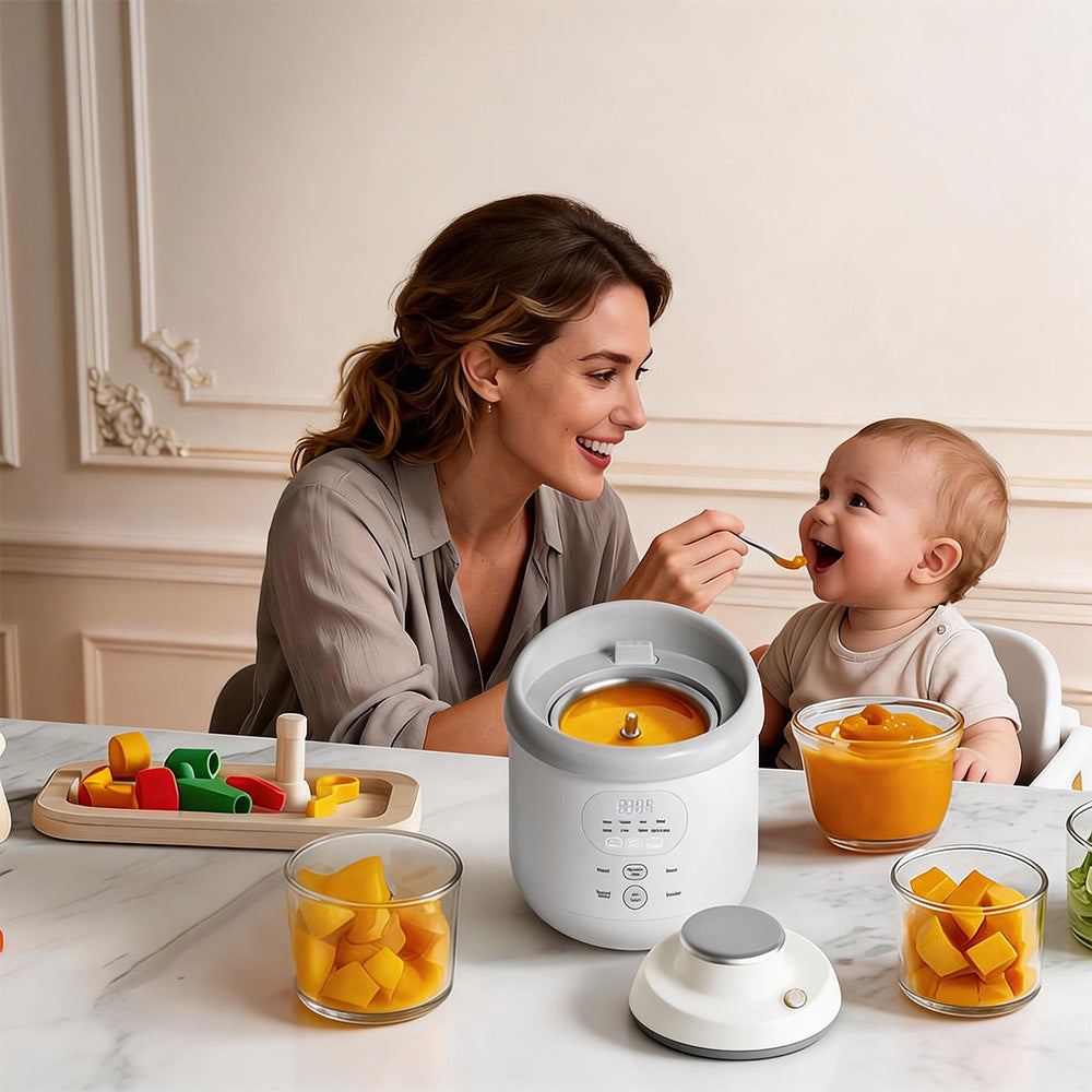 Smart Age-Stage Presets: From your baby’s first tastes at 4 months to hearty toddler stews at 12+ months, the intuitive digital menu offers one-touch programs tailored to every developmental stage.
