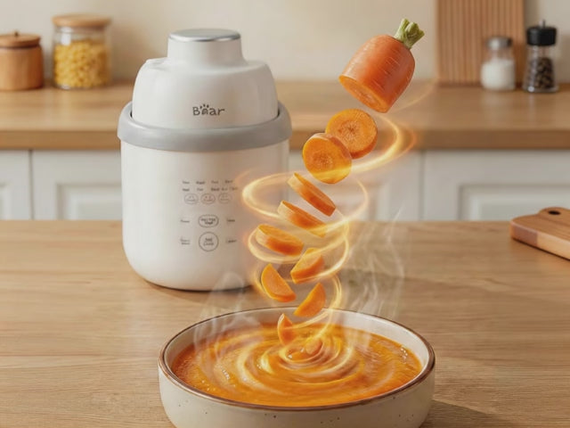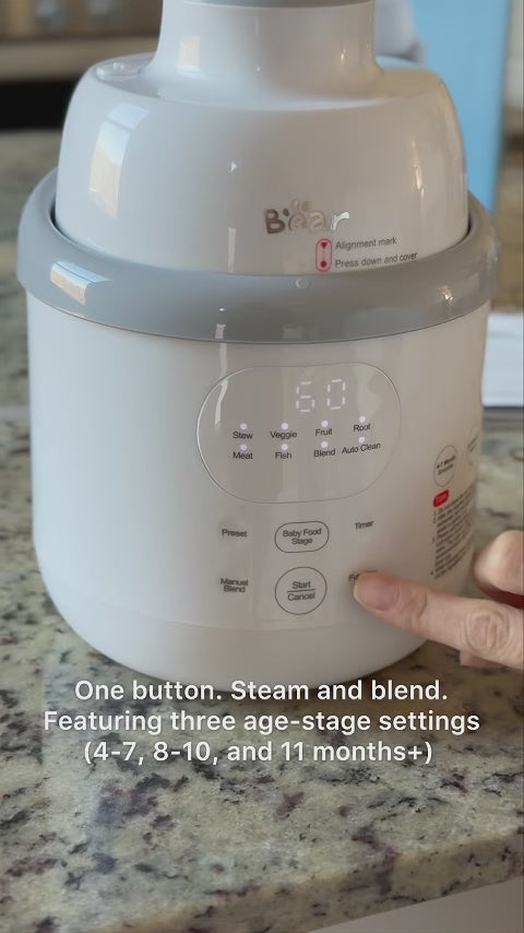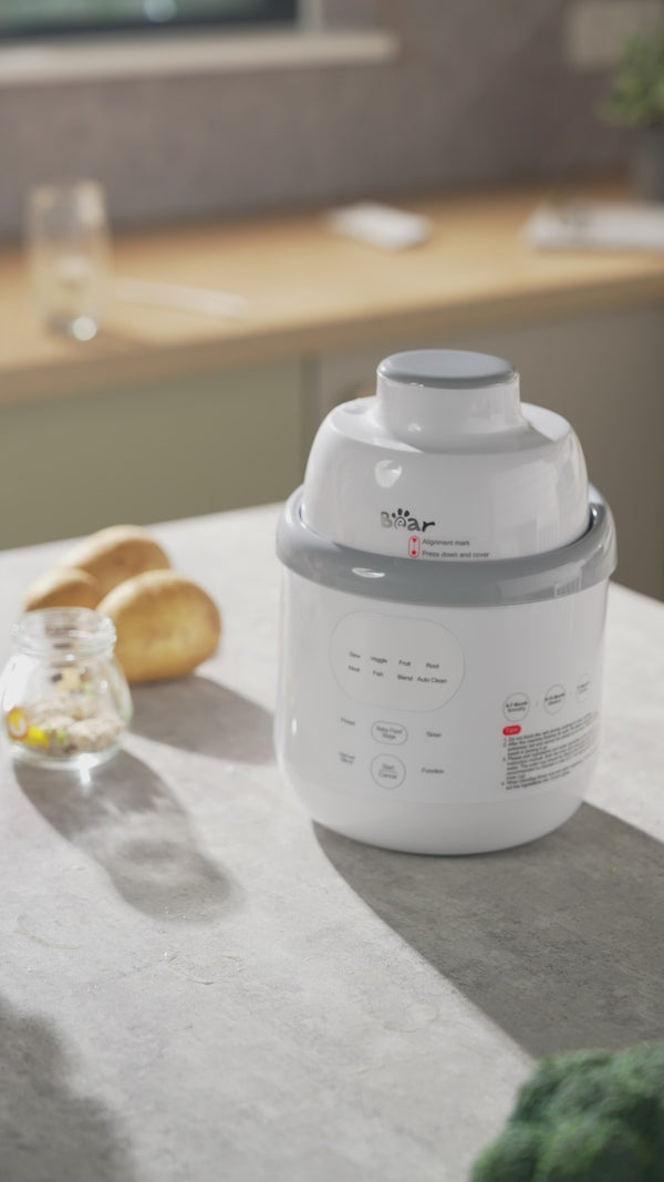 The Bear Nutriease Baby Food Maker is your trusted partner throughout the baby feeding journey, combining a steamer and blender in one compact device to help you prepare fresh, nutritious meals with ease.